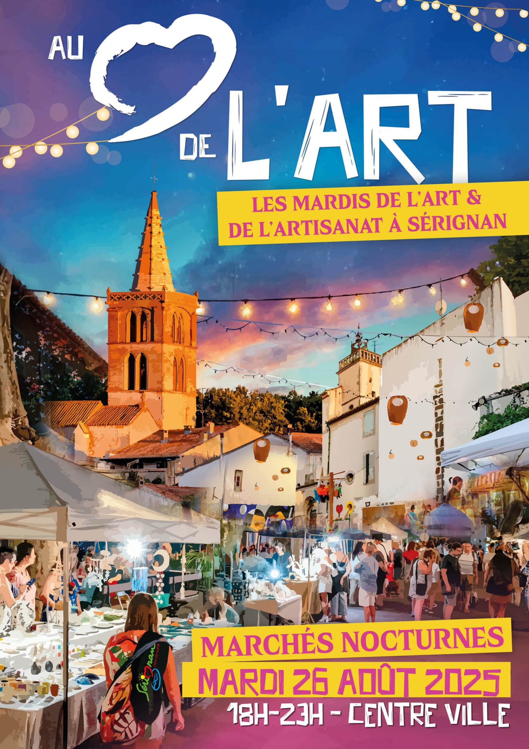 Dernier rendez-vous "Au coeur de l'art". Le marché nocturne de l'artisanat à Sérignan. Un rendez-vous à ne pas manquer !