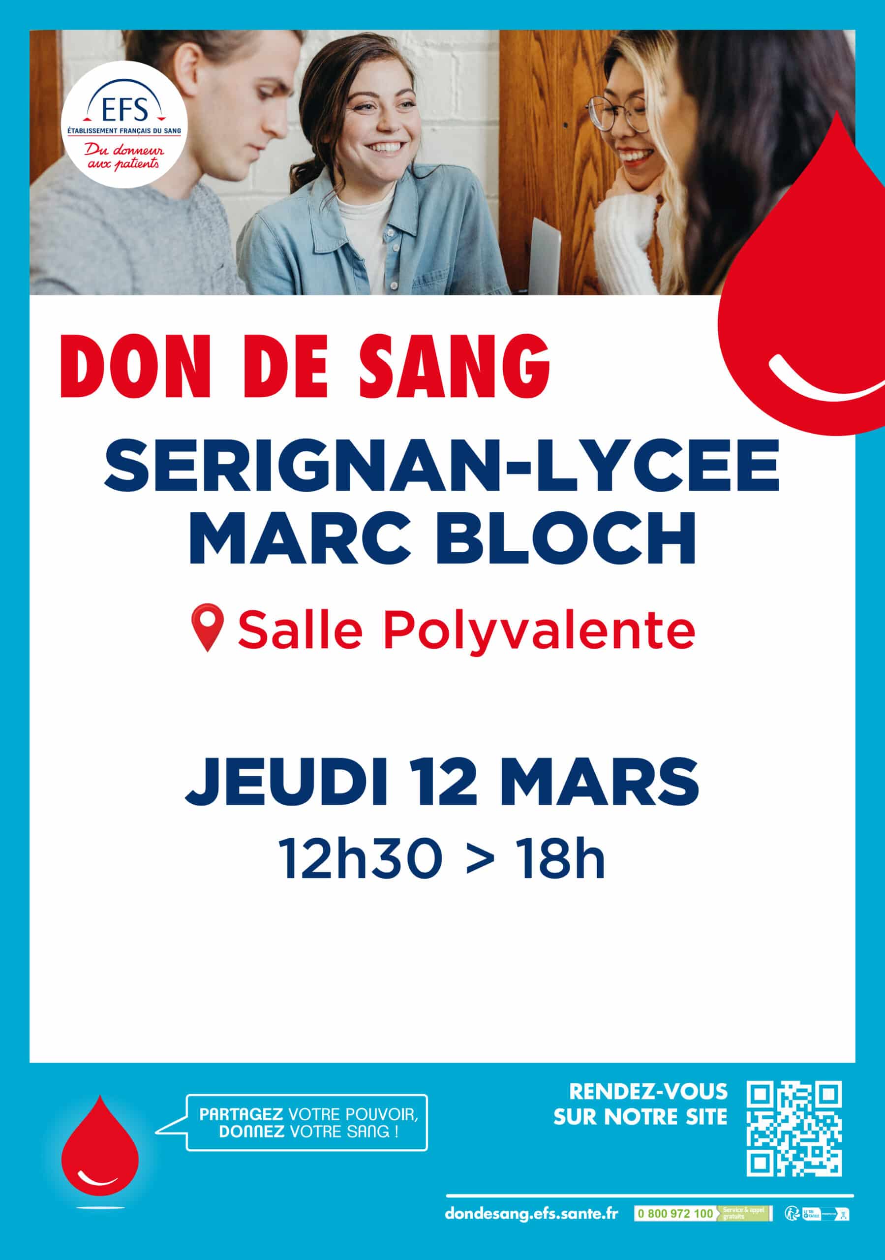 COLLECTE DE SANG JEUDI 12 MARS AU LYCEE MARC BLOCH