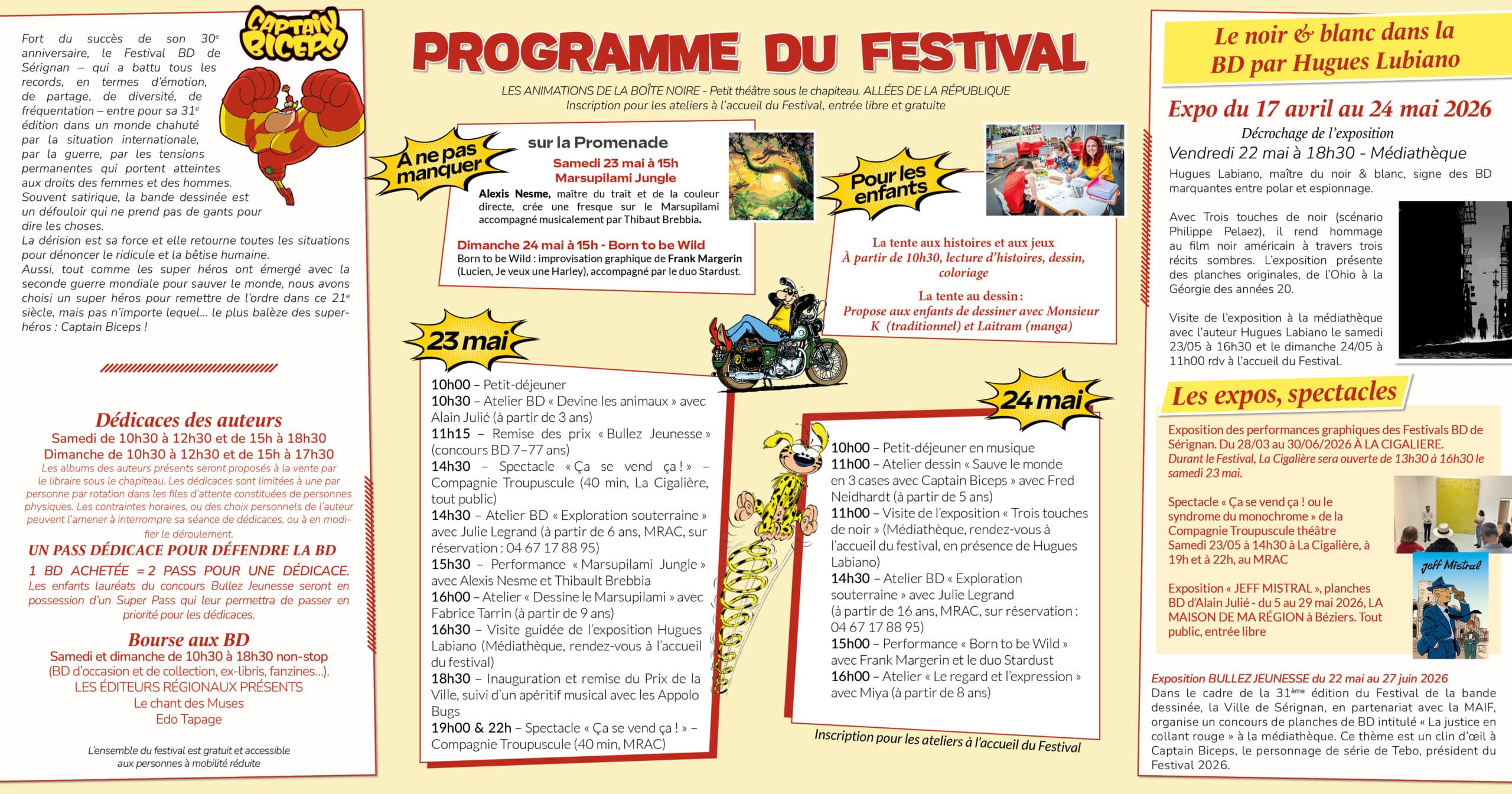 Fort du succès de son 30ème anniversaire, le Festival BD de Sérignan – qui a battu tous les records, en termes d’émotion, de partage, de diversité, de fréquentation – entre pour sa 31è édition dans un monde chahuté par la situation internationale, par la guerre, par les tensions permanentes qui portent atteintes aux droits des femmes et des hommes.