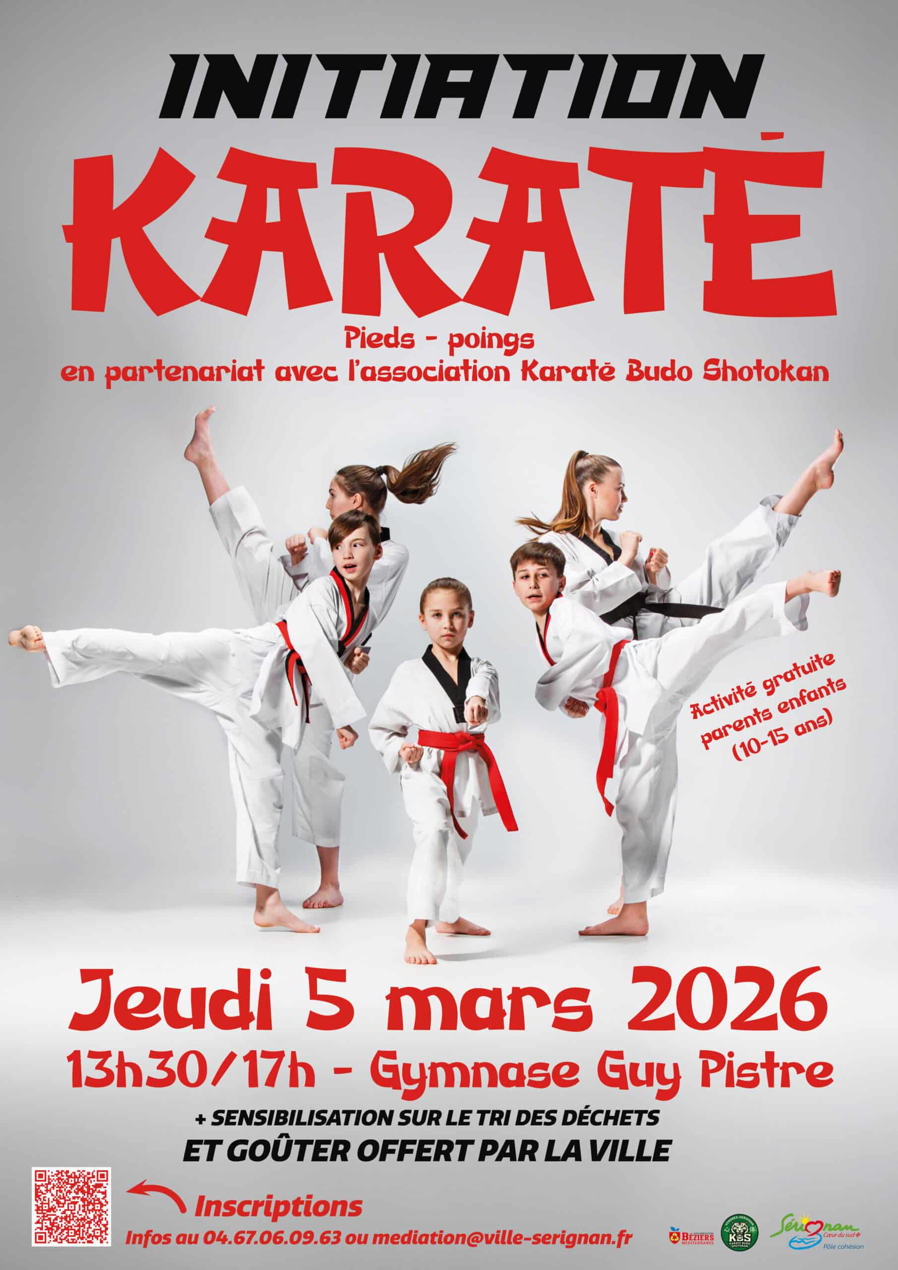 La ville de Sérignan, et le pôle cohésion, en partenariat avec l'association Karaté Budo Shotokan, propose une après-midi d'initiation gratuite "Pieds - Poings".