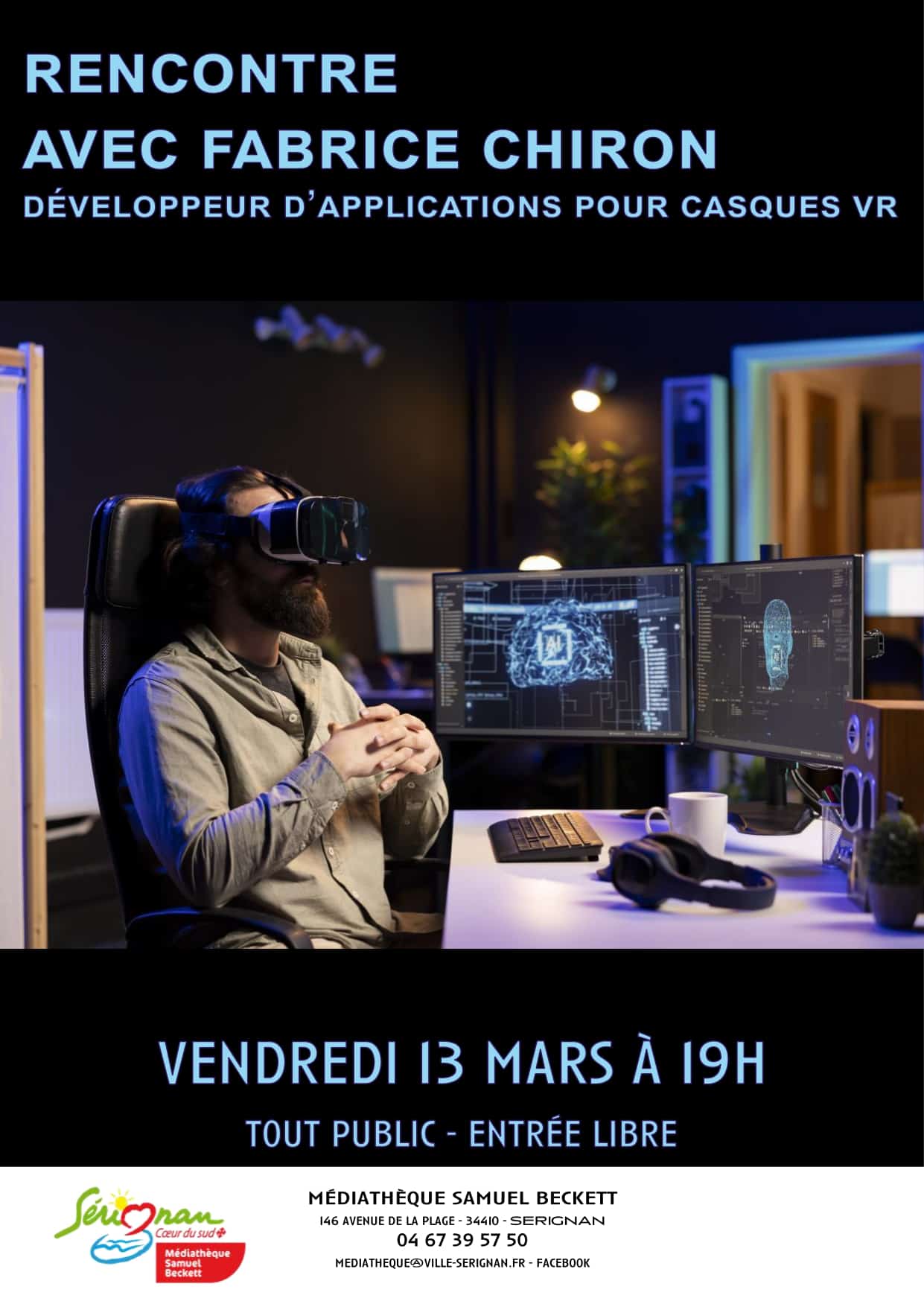 Rencontre avec le Sérignanais Fabrice Chiron, développeur d'applications pour casques VR, le vendredi 13 mars à 19h (en entrée libre, tous publics).