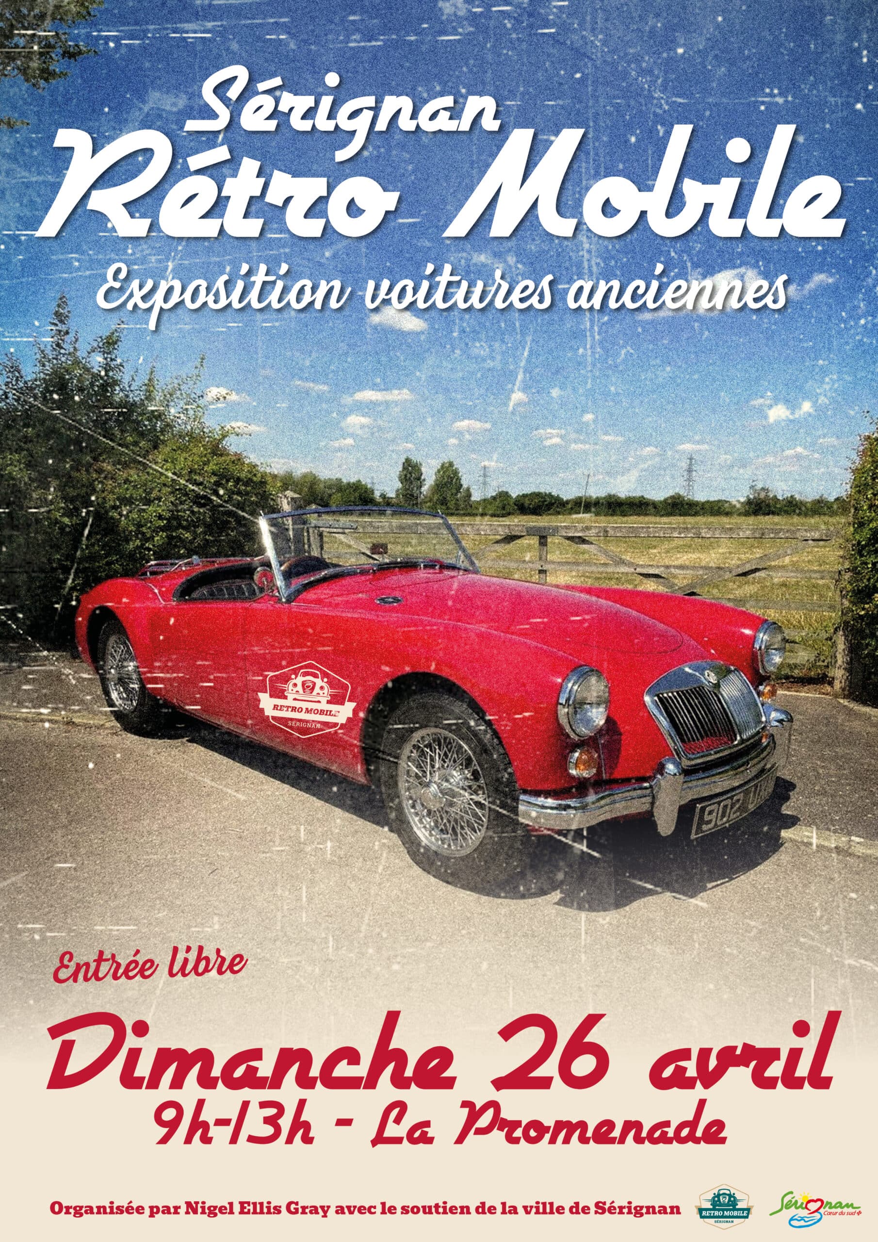 Les passionnés de belles mécaniques ont rendez-vous à Sérignan, sur la Promenade, pour l’exposition Rétro Mobile, un moment convivial autour des voitures anciennes. Organisée par Nigel Ellis Grey avec le soutien de la ville de Sérignan. Entrée libre.