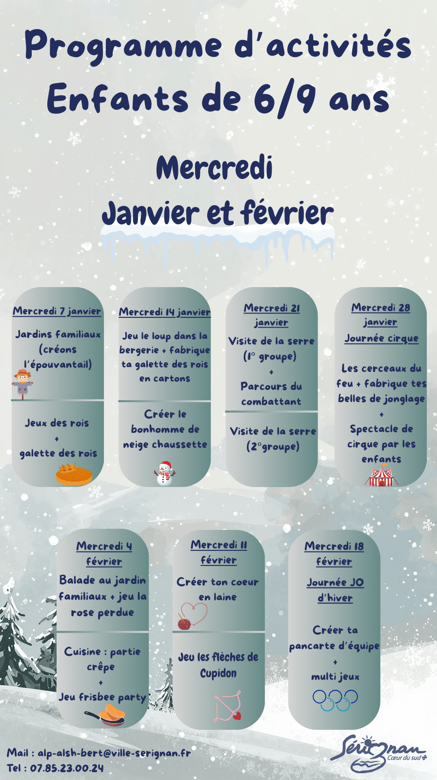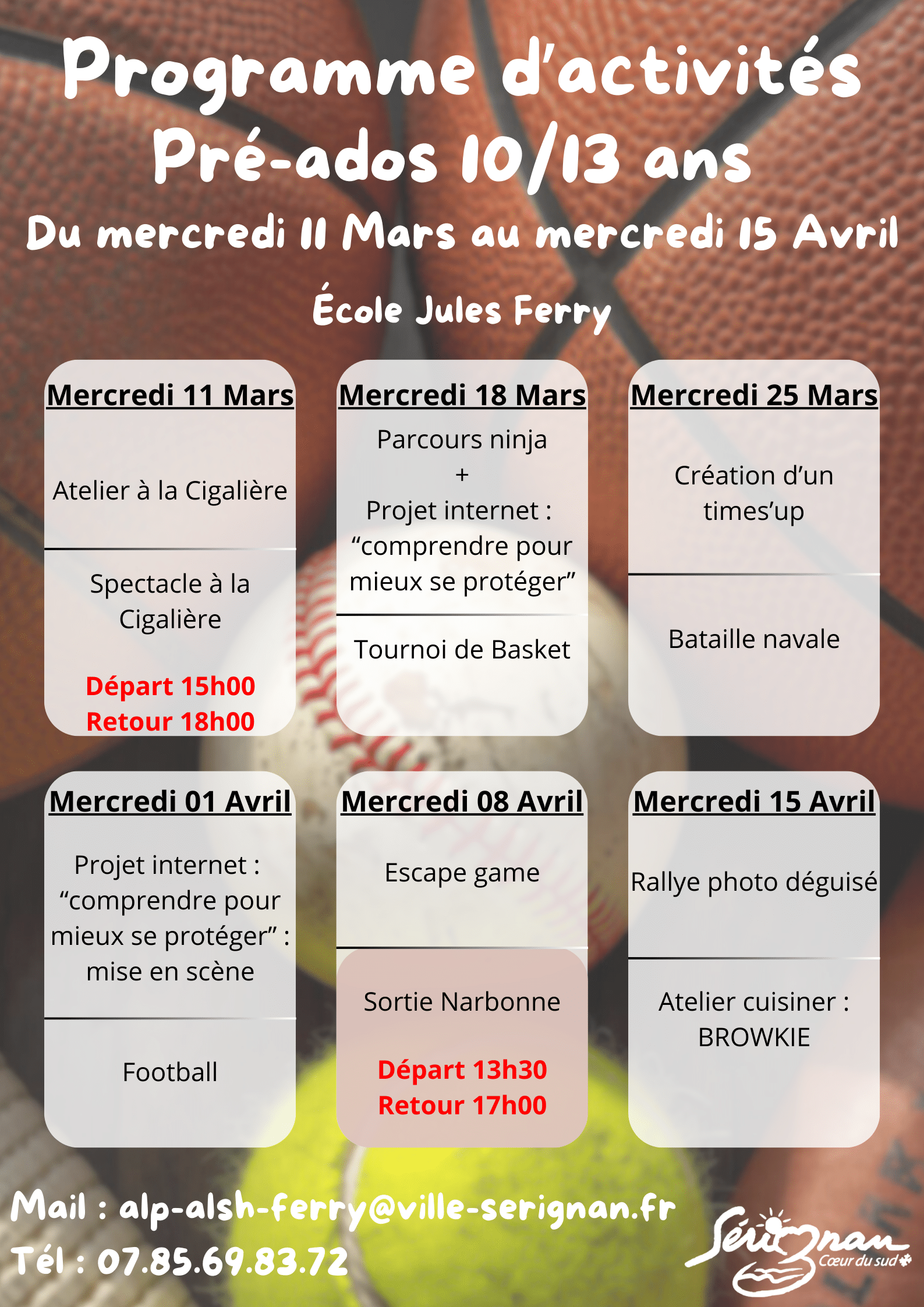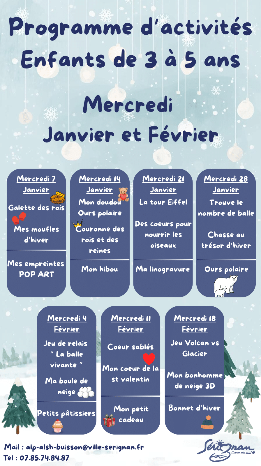*Inscription pour les vacances scolaires le samedi en Mairie avant chaque période de vacances.