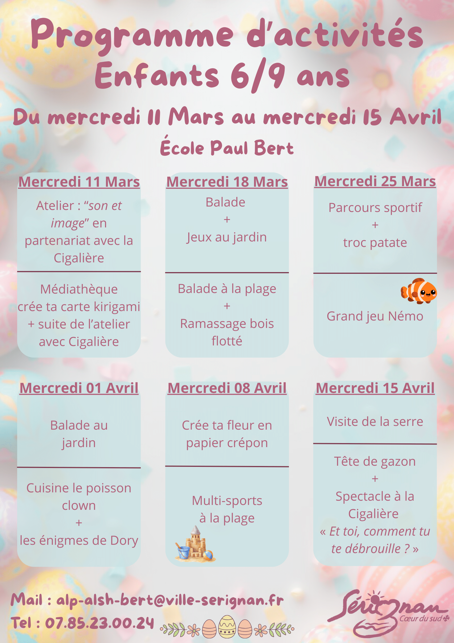 Programmes des mercredis Mars Avril